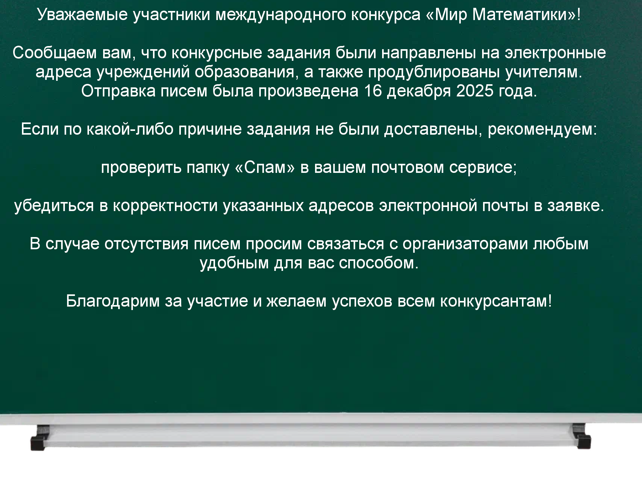 В течение 30 дней мы принимаем и рассматриваем обращения и замечания. Через 30 дней с момента рассылки, результаты конкурса изменениям не подлежат.